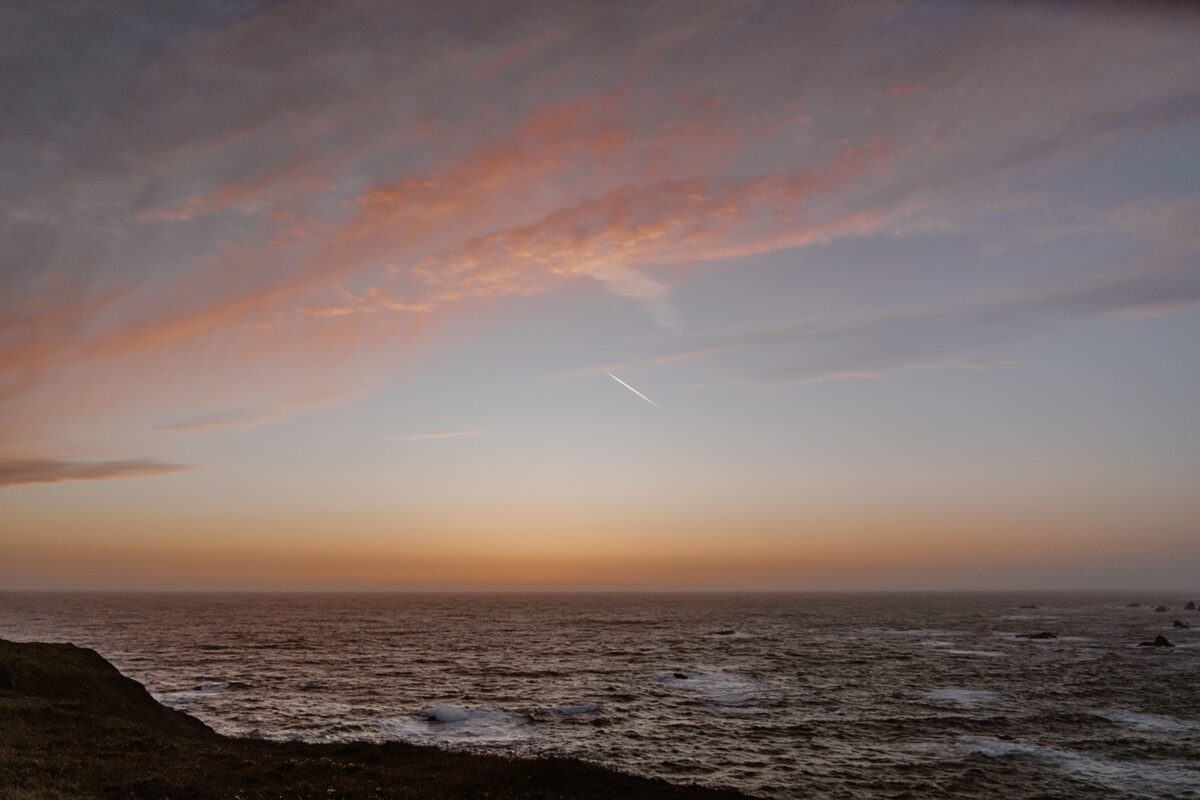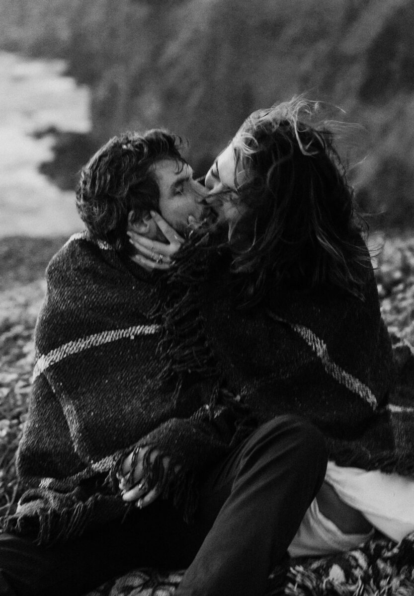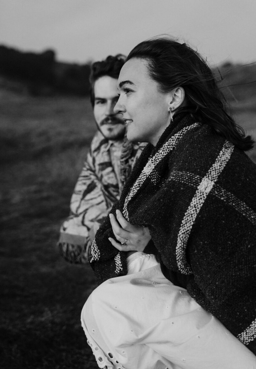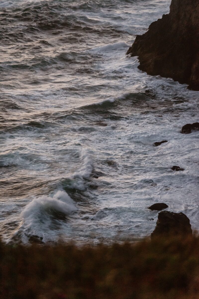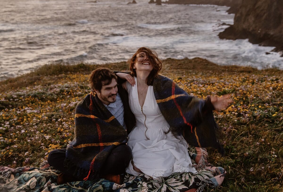 At Navarro Point that evening, it was windy and cold enough that they needed to wrap up in blankets between shots. This is the reality of coastal elopements in Northern California: having a tradeoff of stunningly dramatic cliffs and unpredictable weather.