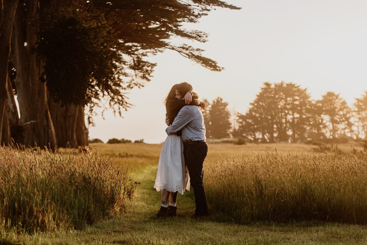 The Mendocino coast is notorious for being foggy and cold, even during the summer. So if you’re planning coastal portraits during this time of year (and especially in colder seasons), bring layers you’re willing to be photographed in (I also keep hand and body warmers on hand for couples to stay extra warm and comfortable). Farther inland in Anderson Valley and around Hendy Woods, temperatures are more in line with what you’d expect of a typical California climate, with rain in the winter and hot sunny days in the summer.