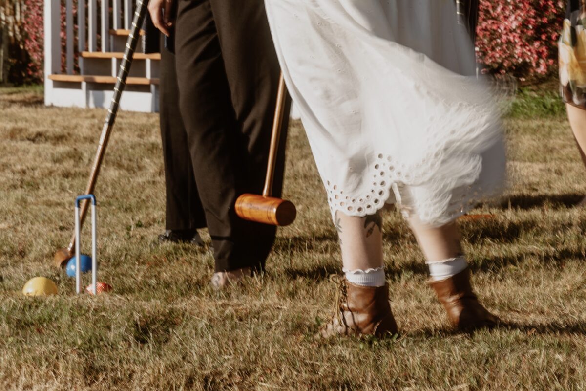 The second day had a completely different rhythm. I arrived in the late afternoon, and the focus was on celebrating with their closest friends rather than family. They’d set up croquet and bocce on the lawn to playfully compete in (I totally forgot to bring my badminton set I’d offered, but thankfully it wasn’t missed). There was pizza, casual conversation, and lots of laughter – the kind of relaxed and unhurried gathering that happens when you’re not on a strict timeline and watching the clock.