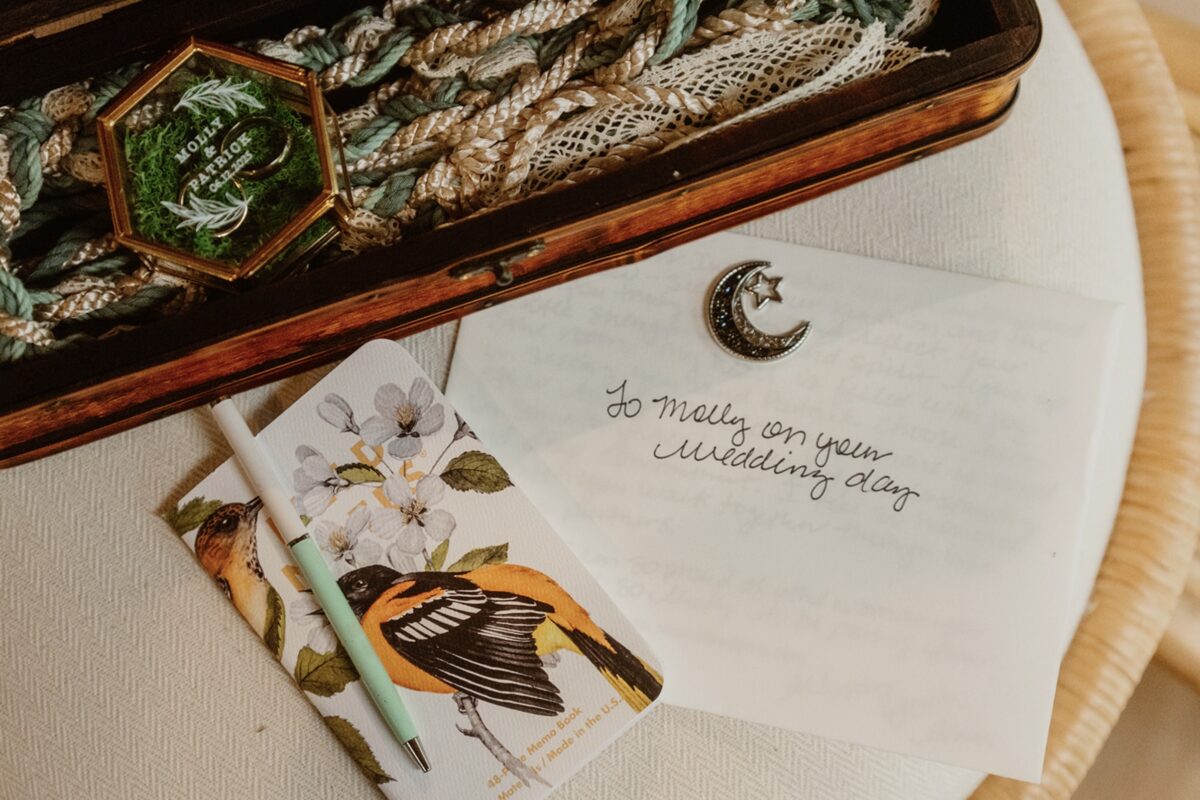 When I asked them to describe their vision at the beginning of our planning, Molly wrote: “Going into the woods and having a quick casual ceremony, then food and drinks after.” Patrick added that he wanted to “feel good and not stressed, and for people to be happy for us.” That’s the foundation we built from.